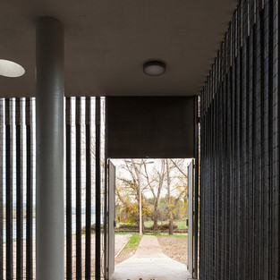 Сохраняя площадь и объем предыдущего здания, новый Центр каноэ расположен на берегу реки Альвега. Его близость к реке Тежу, в регулярно затопляемом районе зимой, определила его положение, поднятое над уровнем земли - повышение проницаемости грунта. Поэтому было выбрано покрыть стены раствором из черного переработанного пластика, способного противостоять воздействию природных стихий, когда здание может быть затянута рекой, будучи проницаемыми для потока воды одновременно.