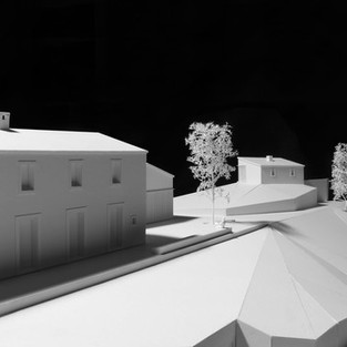 AP House свидетельствует о возрождении древней сельской деревушки, расположенной на вершине одного из самых высоких холмов Урбино, высоко ценимой за свой ландшафт и окружающую среду. Новая система зданий построена на древних руинах, относящихся к средневековым коммунам. Связанные друг с другом на уровне Гипогея, сооружения покоятся на бетонной платформе (38 Х 20 м), доминирующей над окружающим ландшафтом. Ядро домов, которое образует единую жилую единицу, восстанавливает центральную роль этого участка в ландшафте, восстанавливая прямой и эмпатический диалог между новыми зданиями и исторической стратификацией.