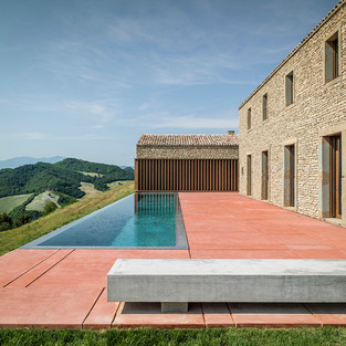 Если проект с его архитектурными композициями и строгостью верно интерпретирует типичные формальные темы этого итальянского региона (Мarche), в его интерьерах, в обработке материалов, дизайне и его мебели, он хочет оправдать свою замечательную современность.