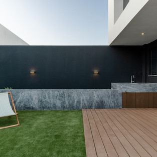 Строительство следует за наклоном местности и преобразует всю площадь участка за счет дифференциации уровней и артикуляции пустот, построенных с помощью зенитного освещения. Эти пустоты простираются от крыши до подвала и проявляются в дизайне южной стороны здания. Пространства, возникающие в результате такого сочетания, обеспечивают идеальные условия для естественного освещения и вентиляции и одновременно гарантируют полную приватность во всех частях дома.