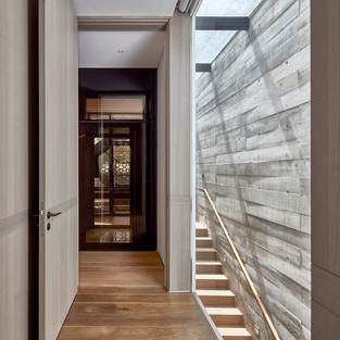 Интерьер дома состоит из ряда хорошо пропорциональных жилых помещений. На первом этаже гостиная и столовая плавно переходят в пышный сад и неглубокий бассейн, где микроклимат создается за счет озеленения и стены, блокирующей бриз. Эта стена предназначена для охлаждения и уединения, таким образом приглашая естественную вентиляцию в интерьеры, позволяя использовать их как полностью открытое пространство.