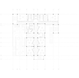 «Большая гостиная», расположенная на первом этаже, является центральным общественным пространством кампуса, где посетители, ученики, родители и персонал могут собираться и взаимодействовать. Пространство может выступать в качестве многофункциональной крытой игровой площадки, а также зала для мероприятий. Чтобы максимизировать потенциал для гибкости, пространство подразделяется посредством манипулирования потолком и элементами стены, избегая фиксированных перегородок и дверей. Ряды карманных пространств и комнат образованы в складках стен, включающих Детский зал, что позволяет визуально соединяться с центром комнаты.