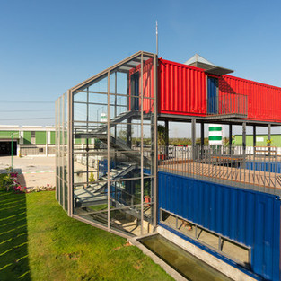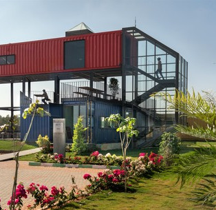 Начиная с концепции компактного дизайна рабочего пространства, который сочетает в себе отстраненность, экологичность, меньшую выработку отходов, переработку и тормозит усиление потребления, контейнеры следуют идее мини-ден, где пользователи имеют все удобства и технологии в небольшое пространство команда Balan and Nambisan Architects переоборудовала 4 подержанных грузовых контейнера в компактное пространство площадью 1500 кв. футов с рабочей станцией, столовой / кладовой, открытой террасой и набором туалетов.