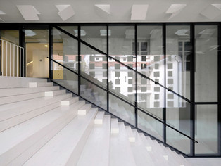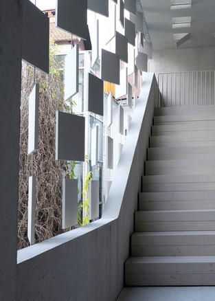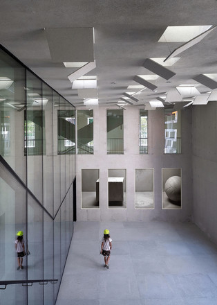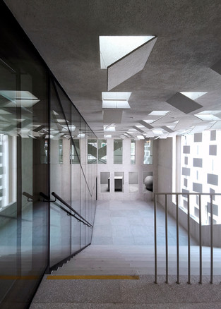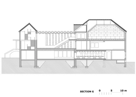 В месте, где простая, редко используемая терраса выходила во внутренний атриум, архитекторы устроили внешний зрительный зал с боковой лестницей и стеклянной стеной. Это вмешательство резко подчеркивает новый опыт окружения, так как здание с внешним зрительным залом приобрело большое, открытое и воздушное пространство, которое сливается с самим городом.