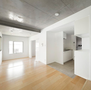 Жилые помещения сочетают в себе простую конструкцию с небольшим потерянным пространством, что позволяет использовать различные гибкие конфигурации. Это выражается в контрастных белых панелях и голых бетонных стенах. Последовательность шагов в каждом из этих пространств создает отношения, в которых жильцы могут менять жилую, столовую и спальни. Кроме того, L-образная самонесущая стена была разработана для использования в качестве гардеробной или, возможно, компактного кабинета.
