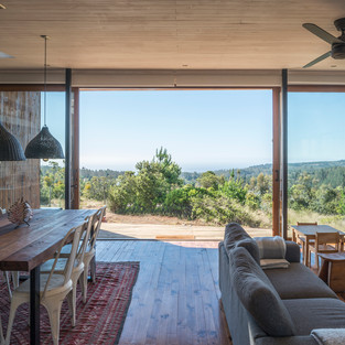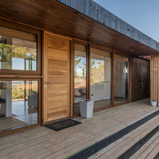 С главного входа можно любоваться открывающимися великолепными видами перед входом в дом. По обе стороны прихожей установлены зоны технического обслуживания дома; с одной стороны кладовая и прачечная, а с другой стороны наружный открытый душ, который соединяется с главной ванной комнатой.