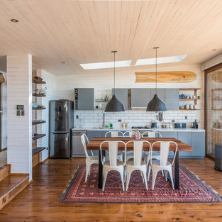 План дома выполнен в виде единого общего пространства и двух флигелей для спален. В одном из флигелей - хозяйская спальня, а на другом – гостевая зона. область передвижения по направлению к общим пространствам объединена, что позволяет расширить площади общего пользования. Ванные комнаты полностью идентичны друг другу, хотя главная спальня оборудована раздвижной дверью, выходящая в коридор, что позволяет ей быть отдельной ванной комнатой или гостевой ванной.