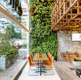 Большое количество тропических растений, в особенности дерево джабутикаба, высажены снаружи и внутри ресторана в виде вертикального сада. Растения обеспечивают визуальную связь между тремя обеденными зонами: внешним балконом, который вмещает 15 человек; цокольным этажом, вместимостью 22 человека; и самым большим залом, на верхнем этаже, где 26 посадочных мест. Эти три области связаны одними и теми же элементами дизайна. Однако, они генерируют различные сенсорные ощущения в каждой среде, в дополнение к различному представлению об общественном пространстве, каждое из которых имеет уникальный угол обзора.
