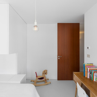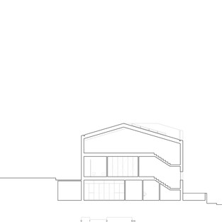 Крыша огибает гребень вокруг 45º, таким образом, совпадая с диагональю плана здания. Данная деталь отвечает на формальную потребность в характеристике угла, в то же время отвечая на желание вести диалог с окружающими. Это позволило согласовать меньшую высоту строительного объема с существующими западными и северными постройками только с одним этажом. С другой стороны, это подтверждается определением угла улицы, образованного «Rua dos Faróis» и «Avenida da Bela Vista», указывающим на коллективное жилищное строительство на востоке. Потому что мы были заинтересованы в автономизации обоих входов они расположены в противоположных углах: в «Rua dos Faróis» рядом с крайним западом и в «Avenida da Bela Vista» на крайнем севере. В обоих случаях вычитается масса изначального чистого объема, создавая небольшое крыльцо и маскируя объем гаража