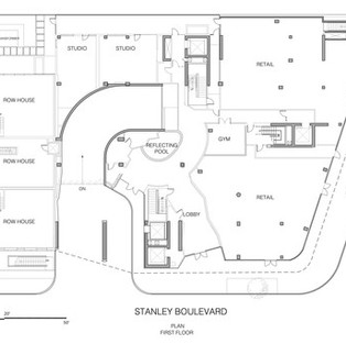 В «поселке на склоне холма» площадью 4 460 кв.м (48 000 кв. Футов) предлагается множество различных типов жилья: две студии, восемь кондоминиумов, три таунхауса и пять вилл. Такая смесь приводит к высокому чувству общности, а также к ощущению индивидуальности и эксклюзивности даже в этой небольшой застройке. В отличие от традиционных схем квартир, каждая единица имеет свой собственный независимый вход/выход.