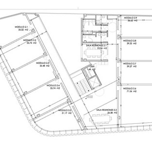 Это архитектурное решение предлагает реализацию офисного здания перед Ibarra Kalea, как наиболее представительный элемент, в то время как промышленное развитие находится на заднем плане.