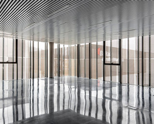 Промышленные павильоны задуманы как абстрактные элементы, в которых осветительные и вентиляционные отверстия встроены в фасад. Они решаются с помощью сборной бетонной конструкции и внешнего ограждения в сочетании со сложенным листом из защищенной от морской среды стали и сборных бетонных панелей.