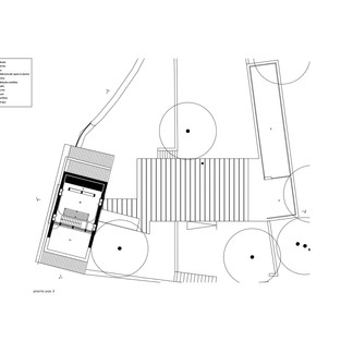 Земля простирается на три террасы, выходящие на восток, с четырехэтажным зданием, предназначенным для самой уединенной зоны. Учитывая небольшие размеры этого здания, было предложено расширить площадь за счет введения двух новых элементов: объем для расширения жилой площади и бассейн. Новый объем включает в себя площади для более общественного пользования, такие как прихожая, кухня, гостиная и вспомогательные помещения для бассейна. Он выглядит перпендикулярно существующему зданию и состоит из двух этажей, простирающихся на восток, следующих и относящихся к нескольким уровням с террасами на земле, таким образом распределяя различные области использования, такие как различные жилые помещения, дорожки и т.д.