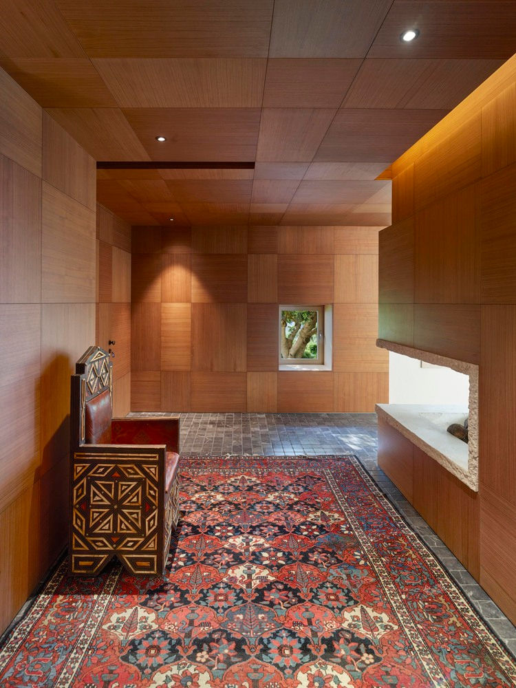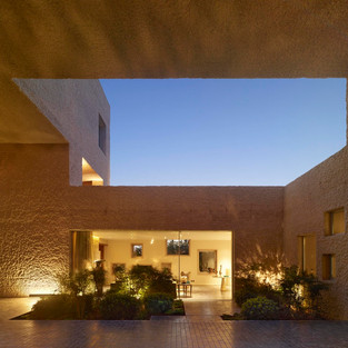 Буш-разбитый бетон подчеркивает материальный вес, поскольку он относится к основному стилю архитектуры в Иордании, которая характеризуется твердостью и весом. Учитывая умеренный климат Аммана, это важное пространство дома фактически толкает использование или жилье дома на внешней стороне, а тем более мелкие и внутренние пространства интерьеров возвращаются к идее базового укрытия.