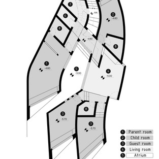 Дом расположен на склоне холма. Из окон открывается вид на озеро и город. Однако, в этом поместье есть некоторые правила и положения: здание не может иметь вид с обеих сторон. Высота здания не может превышать три метра над уровнем земли. Длина двора перед зданием не может быть меньше 12 метров. На пролетах установлены шторы, позволяющие максимально и минимально использовать солнечный свет летом и зимой. Кроме того, чтобы обеспечить центральные части здания солнечным светом, был использован стеклянный атриум.