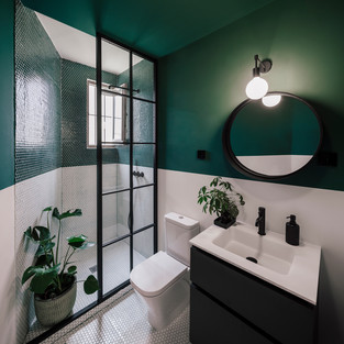За спальней находится нетрадиционная ванная комната шириной всего 1 метр и длиной 10 метров, которая корреляционно включает в себя все функции, которые может пожелать пространство, посвященное наслаждению чистотой и водой; туалет с зоной для чтения, украшенный встроенной лестницей, о которой забыли художники и которая необходима для доступа к шкафам высотой 4 метра; раковина, встроенная в светящуюся нишу, где вы выглядите красиво и мощно в начале дня; Большой душ / балкон, который летает и прыгает через лестницу, с видом на спальню и Сьерра-де-Мадрид; раздвижная стеклянная дверь, которая позволяет принимать душ в помещении под утренним солнцем.