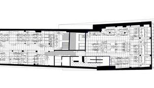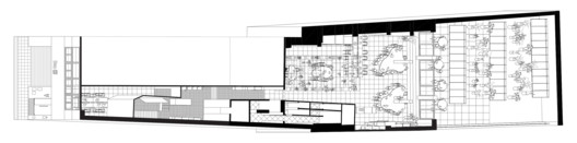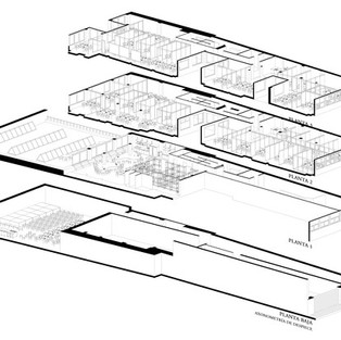 На первом этаже находится вход в здание, большой конференц-зал и зал для проведения курсов, лекций. Следующий этаж предназначен для общей зоны коворкинга, где есть большая кухня, столовая и общая территория, являющаяся центром встреч и взаимодействия между пользователями. Следующие два уровня состоят из 4 модулей с различными конфигурациями офисного пространства. Офисы были материализованы в виде сборных систем гибких конструкций и панелей, где возможны различные конфигурации в зависимости от случайных потребностей пользователей. Все гибкие конструкции были разработаны фирмой FLORA и индустриализированы поставщиками. Было использовано 2,2 тонны вырезанных лазером и перфорированных металлических профилей, что позволило создать быструю систему сборки за счет точного проектирования деталей.
