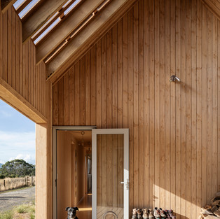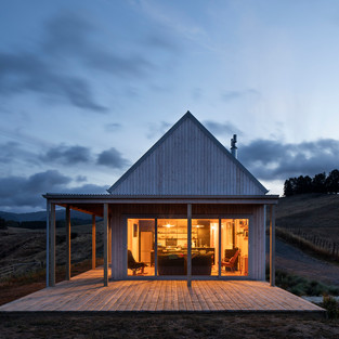 Простая народная форма скромно располагается в окружении сельскохозяйственных угодий, напоминая о богатой лесной истории местного региона Коромандель и культуре пеших походов Новой Зеландии. Облицованный локально выращенными, устойчивыми, вертикальными досками с экологически чистой отделкой из натурального дерева, внешний вид будет сереть в ближайшие годы, раскрывая деревенское серебро и напоминая классические "Хижины Новозеландских Бродяг".