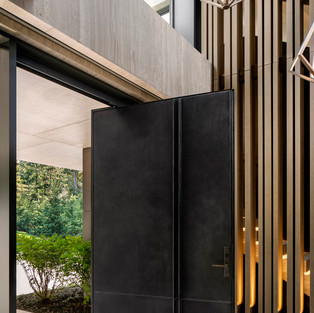 То, как здание в значительной степени скрыто от лишних глаз и из которого открывается вид на озеро, помогает создать неопределенность по прибытии, только чтобы удовлетворить чувство ожидания при входе через большую поворотную дверь.