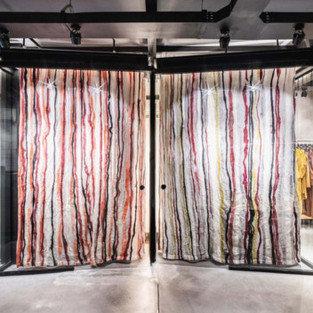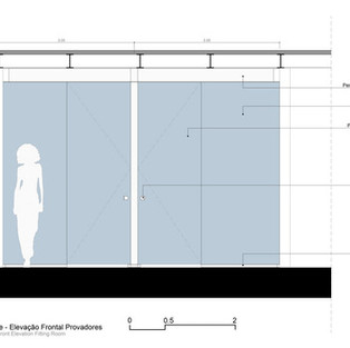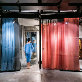 Таким образом, проект реструктуризации состоялся на основе критериев, которые оценили живописные аспекты пространства и выставки его продукции. Первое действие состояло в более концентрированном расположении витрин (вешалки для одежды). Совместив их с боковыми стенками, больший акцент был сделан на экспонаты, а также, на расширение центрального пространства магазина, которое часто оказывается ареной для встреч и семинаров. Как второе важное изменение, все освещение было реструктурировано, с целью полного усмотрения источников света, а также конфигурации ранее упомянутых сценических качеств, оценивая области показа одежды. Наконец, в качестве пространственных объектов, которые создали точку сближения в среде магазина, примерочная была полностью расширена и реструктурирована. Понимая, что они являются наиболее важными местами контакта между покупателями и одеждой, мы внутренне думали о пространстве, окруженном качественным освещением и текстильными поверхностями, которые были настроены в качестве фона для изображений, проецируемых на большие зеркала. Освещение (всегда непрямое) и «облачный потолок» (отвечающий за отражение света и поглощение звука) заканчивают эту сценарную пространственную локализацию.
