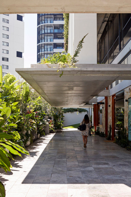 Коридоры в доме открыты, чтобы обеспечить жителям проникание естественного света и вентиляцию всех помещений. Раздвижные солнцезащитные экраны защищают окна. Большие балконы позволяют комфортно находится как в помещении, так и на улице. Большие непрерывные бетонные маркизы уровня земли с ландшафтными садами затеняют торговый уровень. Городской оазис создан на крыше с пышными зелеными садами и затененными пространствами. Слоистые фасады защищают от чрезмерного нагрева.