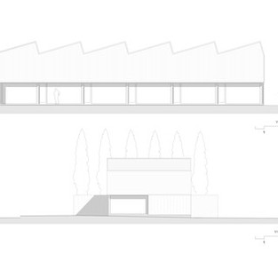 Структурный модуль использовался, чтобы ускорить процесс строительства. Металлическое покрытие поддерживает эти перегородки, чтобы гарантировать непрямой верхний свет и вентиляцию в каждом помещении. Мансардные окна направлены на юг, чтобы обеспечить тусклое, но естественное освещение на рабочей поверхности.