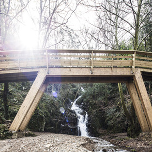 Это необычное сооружение, знаменитое своей винтовой лестницей, поднимающейся на вершину холма с потрясающими пейзажами и очень узким деревянным мостом, который перекинут через реку среди скал и обильной растительностью. Пешеходная дорожка простирается вдоль рельефа, с остановками для отдыха и панорамными точками, чтобы полюбоваться видом.