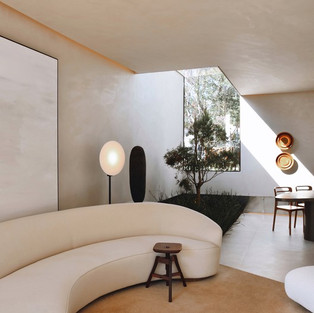 Площадь 75 м² ограничена использованием, а не физическим разделением, и принимает четкий контраст между строгостью и жесткостью ортогональных форм конструкции и органическим и плавным характером планировки и мебели. План заключается в том, что все части отдельны друг от друга, но вместе они являются единым целым. Простота среды работает как чистый холст, где мазки кисти — это мебель и свет, который касается поверхностей.