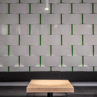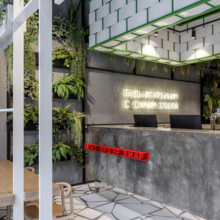 В проекте используются различные аранжировки и сценарии посадки: каждый может найти удобное место на свой вкус. Высокий стол для большой компании расположен в центре зала, а вдоль стен расположены низкие посадочные места, а дизайн амфитеатра завершает интерьер, сочетая в себе как функциональные, так и декоративные элементы.