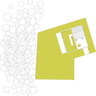 Ночью, когда светотень не работает, первый план составляют светящиеся капли ажура. Здание вырастает из земли и не должно быть отделено от нее никакой полосой. В процессе патинирования керамического материала линия соприкосновения с землей должна становиться все более и более размытой, а цвета поверхности крыши и стены должны быть соединены вместе. Зеленая крыша, со временем, будет иметь растительный покров, и цвета начнут гармонировать, делая дом и естественное окружение единым целым.