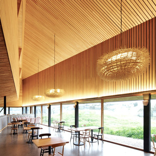 Использование геометрии и применение дерева при проектировании обшивки здания, а также внутренних перегородок занимали центральное место в общей архитектурной концепции. Использование технологии параметрического проектирования для прогнозирования оптимальной формы каждой лиственничной черепицы и ее позиционирования, дополненное ручным трудом по их изготовлению и установке, было новаторской архитектурно–строительной техникой, которая оказалась весьма успешной. Комплементарное слияние технологии и ручного труда.