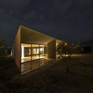 Скромный дом, для любителей вести довольно затворнический образ жизни. Два внутренних двора соединены внутренними смежными коридорами со стеклянной крышей. Его внутренние дворы и жилые помещения остаются вписанными в строгий, но перфорированный треугольник. Две из его трапециевидных наклонных сторон сохраняют преднамеренную защитную массивность, а третья прямолинейная открывает обзор на противоположные горы.
