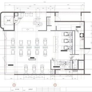 Во-первых, архитекторы смело установили двухсторонние стайлинг-станции прямо в центре зала и обеспечили достаточно места с обеих сторон для основного кругового потока клиентов и рабочих. Вокруг зоны среза между помывочной и зоной приема расположены перегородки с одинаковой высотой 1500 мм, которые также служат в качестве шкафчиков для хранения.