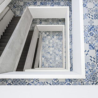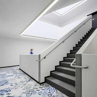 Особую изюминку проекта составляют разноцветно украшенные цементные плитки на лестничной клетке. Вдохновленный эстетикой и традициями (венского) югендстиля / модерна, модернистский дизайн излучает свою уникальную ауру и потенциал идентификации для жителей.