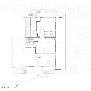 На двух продольных сторонах участка произрастают большие саженцы красного дерева. Конструкция состоит из жилых помещений, которые соединяются с садом и смотровой площадкой. Расположенный около вершины горного хребта, примерно 1800 футов над уровнем моря, дом постоянно находится в экстремальных погодных условиях и в постоянных перепадах температуры. Основное жилое пространство становится соединителем двух контрастных наружных пространств.