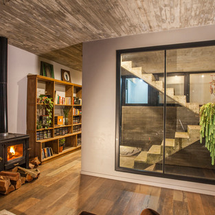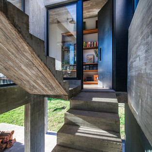 Экологичность: для уменьшения использования отопления были задействованы алюминиевые рамы с DVH. Это повышает тепловой комфорт и звукоизоляцию дома. Использованная система представляла собой водяную плиту с дровяным котлом в качестве источника тепла и рециркуляционным насосом, генерирующим поток воды. Обеспечение горячей водой достигается за счет установки солнечных панелей, расположенных на террасе. Контроль прямого попадания солнечного света решается с помощью раздвижных панелей и естественного экрана, создаваемого деревьями, расположенными по бокам. Садовая терраса вместе с перекрестной вентиляцией играют важную роль в улучшении внутреннего теплового комфорта. Наконец, очистка бытовых сточных вод достигается с помощью специального резервуара с органическими удобрениями, улучшающего качество почвы.