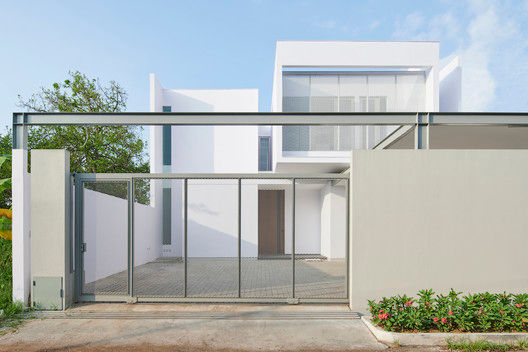 Расположенный в северном районе в самом сердце города Бандунг, дом состоит из 2 этажей. Через вход, висящая белая коробка приветствует вас переосмыслением новой современной архитектуры. Это подвесная коробчатая форма, облицованная белыми расширенными металлическими панелями на вентилируемой фасадной системе.