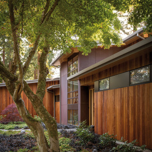 Этот дом на одну семью, для пары с маленькими детьми, предоставляет открытое и удобное жилое пространство, созданное для комфортной семейной жизни. В доме также выделено особое пространство для мастерской и гаража, так как хобби клиента – восстанавливать автомобили. Изящно изогнутые формы крыши вдохновлены особым рельефом участка и волнистой береговой линией озера Вашингтон. Все деревья на участки были сохранены, в том числе японский клен, обрамляющий вход в дом. Прочные материалы обеспечивают долговременную, не требующую ухода защиту от влажного климата.
